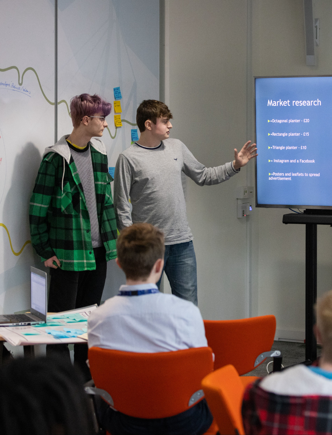 1. Embed entrepreneurship as a core life skill. Enable young people to build confidence, professional skills, and real-world readiness through a structured, outcomes-focused programme, designed to be easy for schools to run, built to generate measurable outcomes, and designed to evidence social value