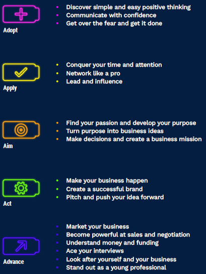 2. Start with mindset, end with a business. This is the only program for young people that goes from mindset all the way through to launching and running a business.